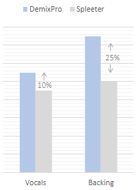 DeMIX Pro 4.0 obtained mean quality scores 25% higher than Spleeter for backing tracks.