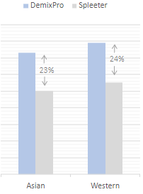 DeMIX Pro 4.0 obtained mean quality scores 23% higher than Spleeter for Asian content.