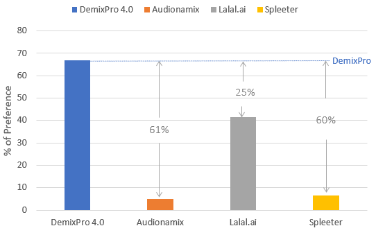 We performed a blind listening test against a number of other stem separation tools and the results are in.